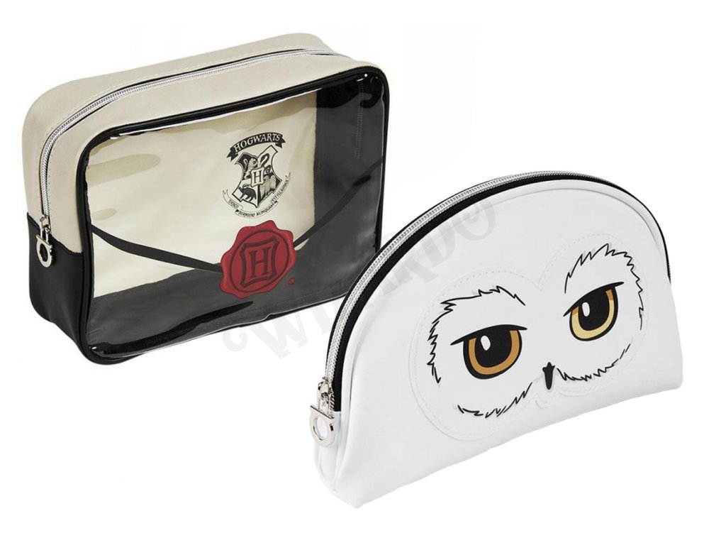 Sada obsahuje dvě toaletní tašky v jednom s potiskem Hedviky a dopisem do Bradavic. Taštičky mají zavírání na zip a jsou ideální na doma i na cesty.