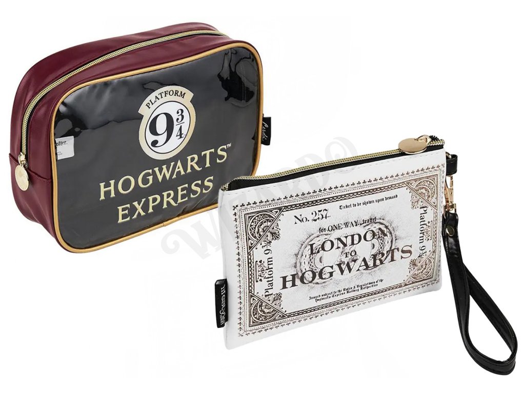 Sada obsahuje dvě toaletní tašky v jednom s potiskem Nástupiště 9 a 3/4 a jízdenky na Bradavický expres. Taštičky mají zavírání na zip a jsou ideální na doma i na cesty.