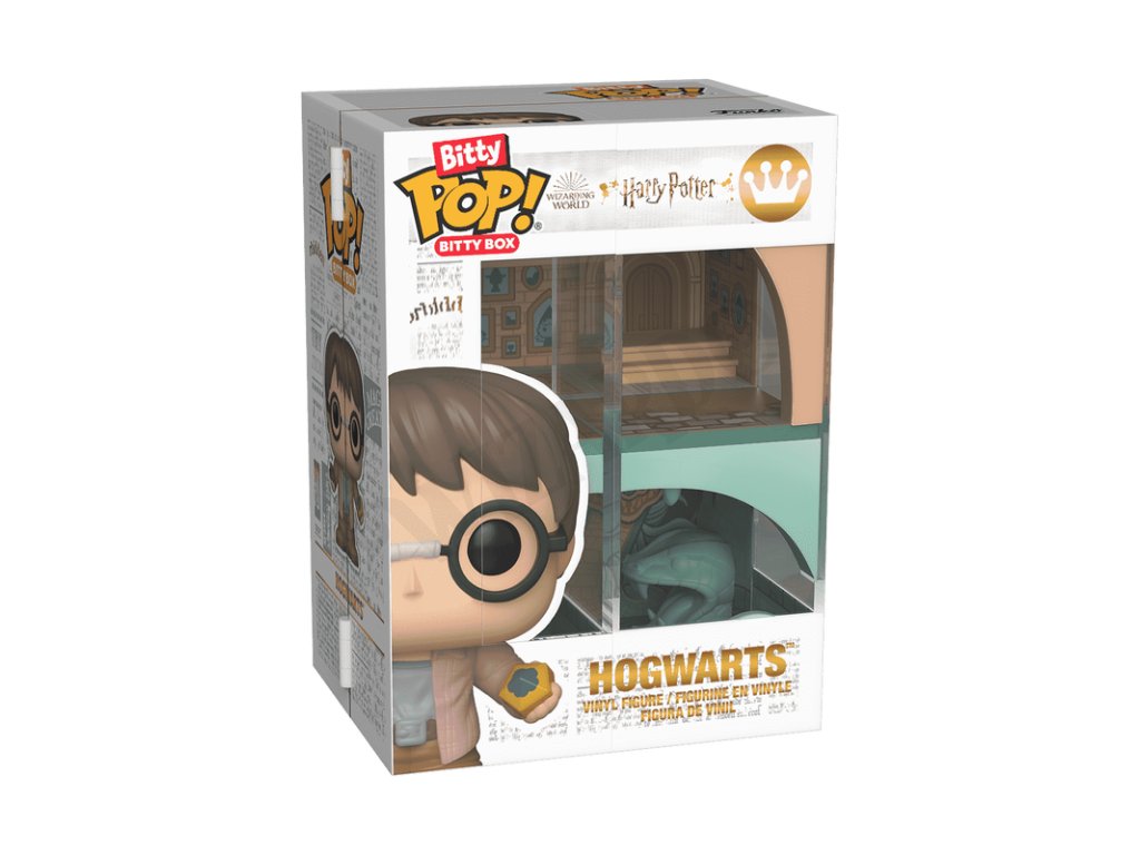 Svět POP! se rozrůstá – a zároveň zmenšuje – s novou kolekcí Bitty Pop! Rozšiř svou sbírku Harryho Pottera™ s Bitty POP! Bitty Box Bradavice! Tato pevná akrylová vitrínka je navržena ve stylu klasické POP! krabičky a po otevření odhalí ikonické místnosti z Bradavic.
