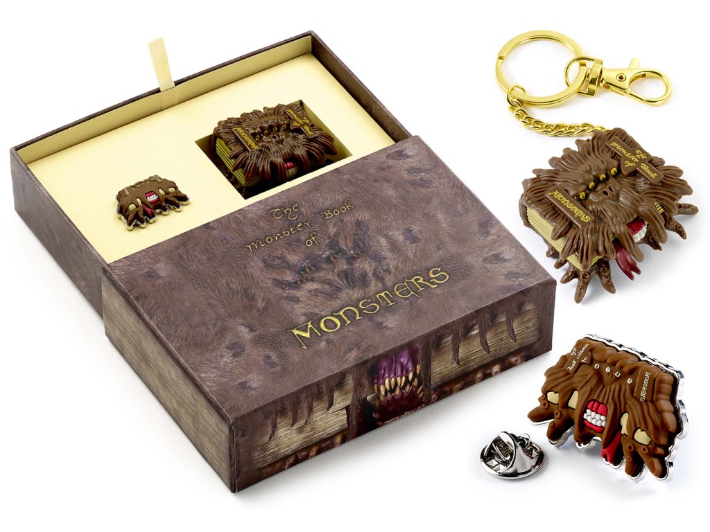 Tato oficiální dárková sada od The Carat Shop přináší dva stylové doplňky s motivem Obludného obludária, divoké učebnice z hodin Péče o kouzelné tvory.