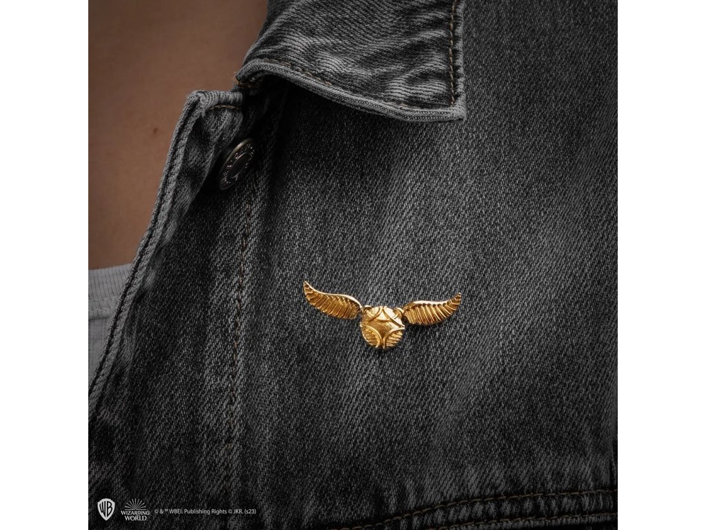 Ozdobte si oblečení tímto nádherným odznakem se zlatonkou, který je důmyslně navržen tak, aby vystihoval podstatu legendárního famfrpálu.