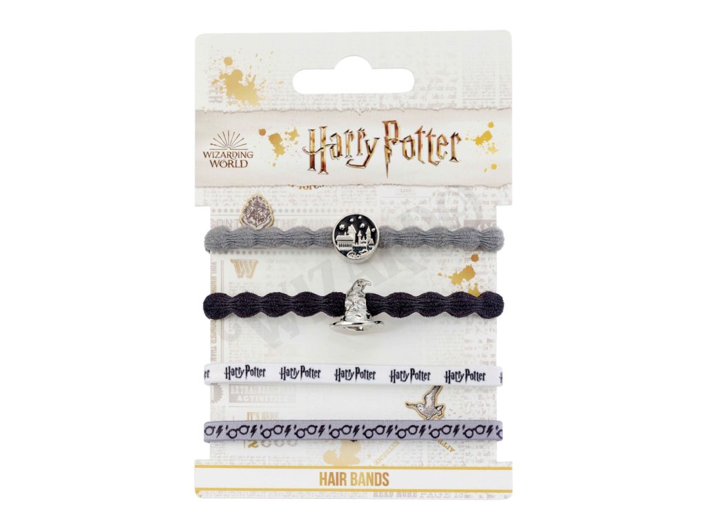 Sada čtyř gumiček do vlasů s motivy Moudrého klobouku a Bradavic, které udělají radost milovníkovi světa Harry Pottera! Elastické gumičky se hodí ke kostýmu, jako stylový doplněk oblečení fanoušků nebo lze je nosit na zápěstí jako náramek.