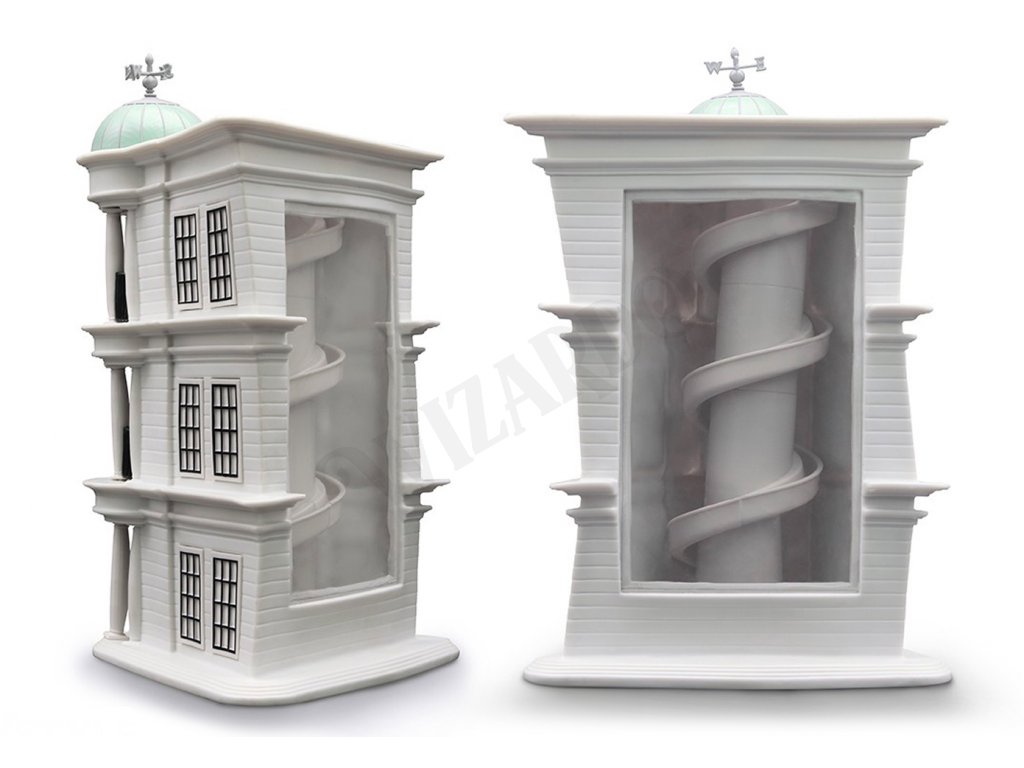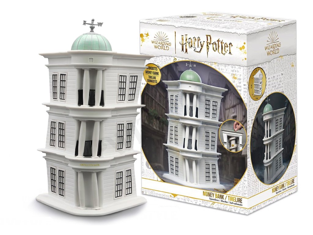 Ulož své peníze do nejbezpečnější a nejslavnější kouzelnické banky Gringottovi! Vkládej galeony, srpce a svrčly do této krásné pokladničky Harryho Pottera od ABYstyle a uvidíš, že mince budou vířit, dokud se nedostanou do podzemních galerií banky... ale dej si pozor na skřety, budou tě stále hlídat!