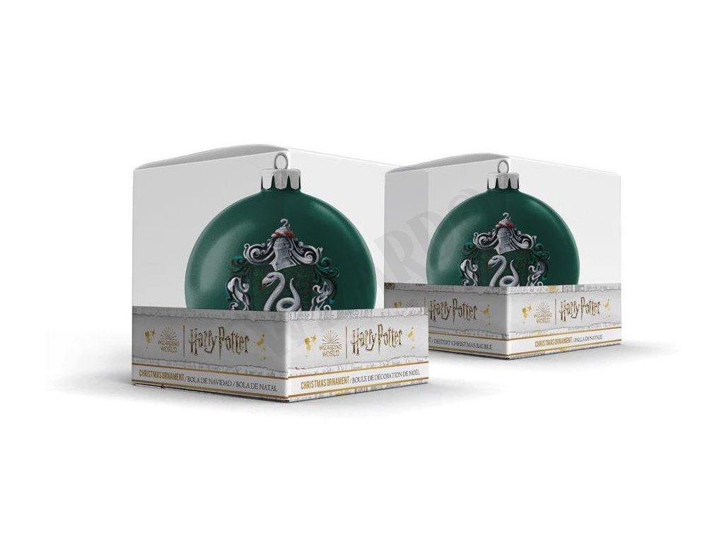 Vykouzlete si vánoční atmosféru s ozdobou (baňkou) s kolejním znakem Zmijozelu.