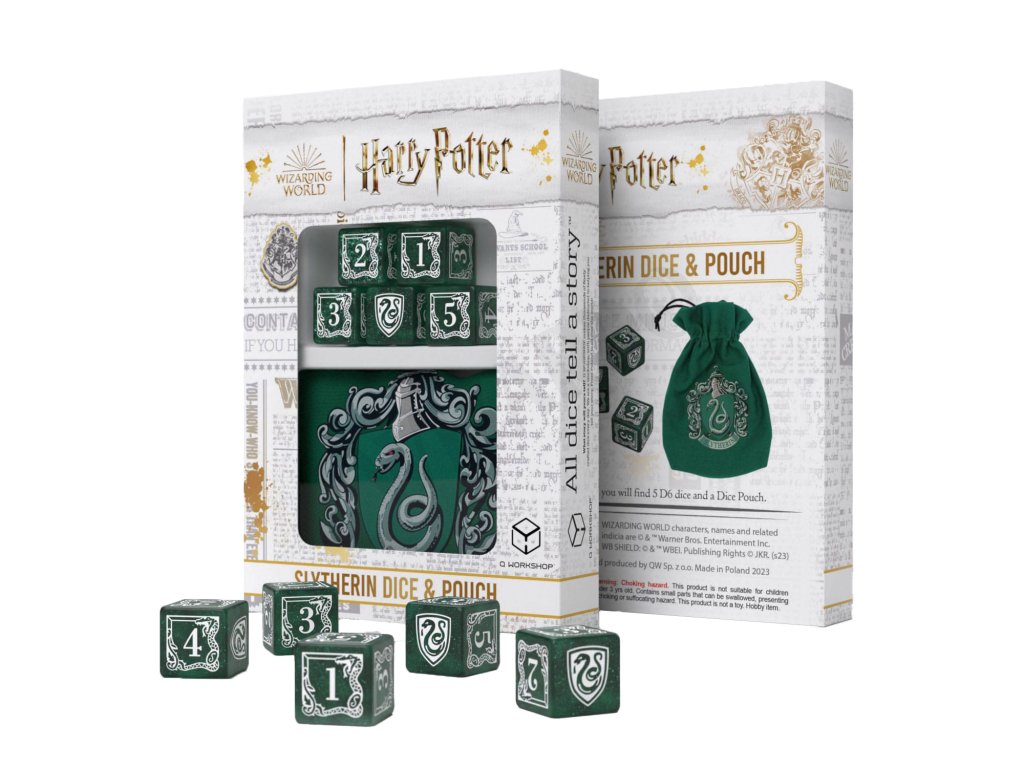 Zažijte kouzlo kouzelnického světa s touto moderní sadou kostek věnovanou Zmijozelu. Design je plný symbolů a detailů odkazujících na kolej známou ctižádostivostí svých členů. Materiál kostek je smíchaný s třpytivým prachem, díky čemuž se třpytí a způsobuje, že zelené a bílé barvy jsou ještě přitažlivější. Pytlík je červené s barevným potiskem zmijozelského znaku na přední straně.