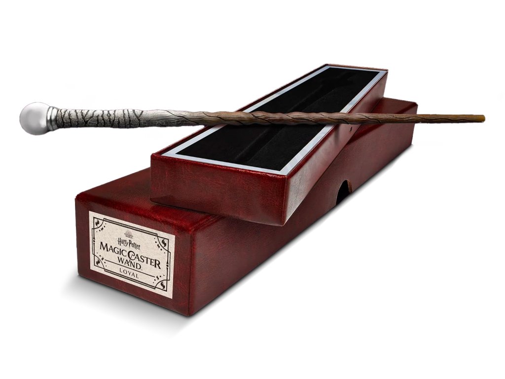 Harry Potter: Kouzelnická hůlka Magic Caster Wand™ je pohybem aktivovaná chytrá hůlka, která se pomocí mobilní aplikace připojuje ke kompatibilním chytrým zařízením ve vaší domácnosti. Kouzelnická hůlka Magic Caster Wand je dobíjecí hůlka s LED diodami, haptickými, pohybovými a dotykovými senzory a bezdrátovým připojením. Hůlka se dodává v interaktivní krabičce s LED diodami a zvukem.