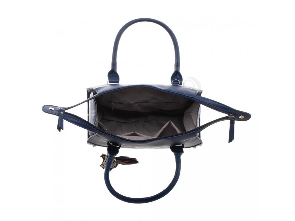 Stylová a kvalitní kabelka v kolejních barvách obsahuje 2 přihrádky a 1 kapsu na zip uvnitř s podšívkou z polyesteru. Vnější skořepina je vyrobena ze 100% polyuretanu s kostkovým vzorem po stranách. Ideální na cesty pro uschování peněženky, klíču, kosmetiky a nebo dokonce i dopisu k přijetí do Bradavic. Taková Hermionina kabelka o velikosti 28 x 22 x 13 cm.
