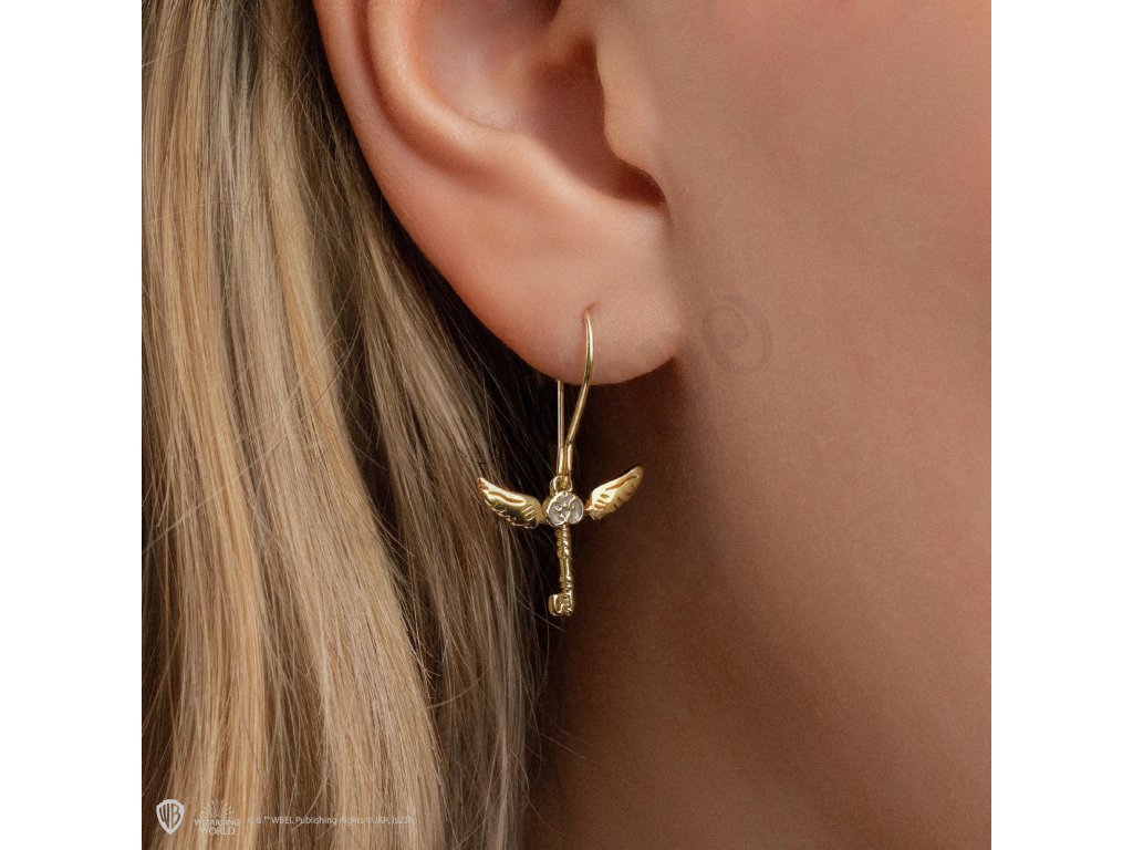 Náušnice létajících klíčů, inspirované kouzelným světem Harryho Pottera, jsou promyšleně navrženy tak, aby upoutaly pozornost zlatým povrchem a složitými detaily tahů na křídlech. Jejich lehká konstrukce navíc umožňuje bezproblémové nošení po celý den.