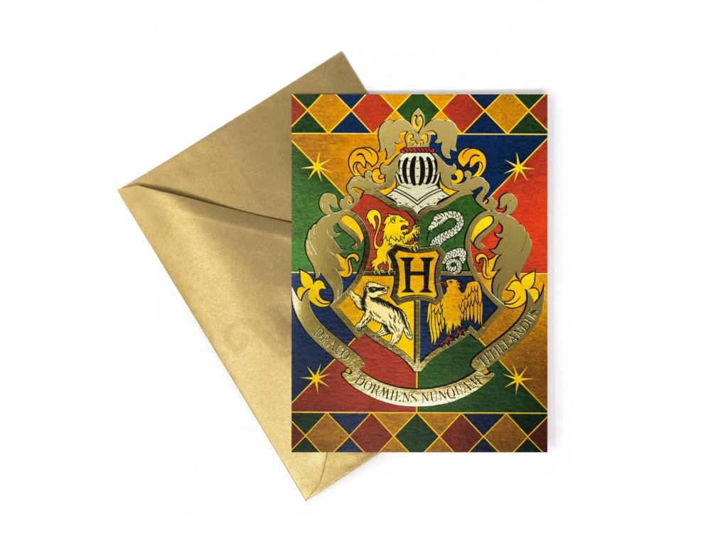 Originální přáníčko (12,5 x 17,2 cm) se znakem Bradavic - školy čar a kouzel, z dílny MinaLima, tvůrců replik, které byly použity ve filmech o Harrym Potterovi.