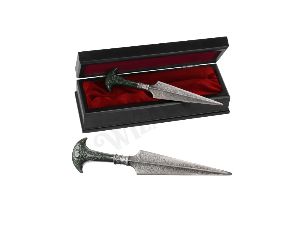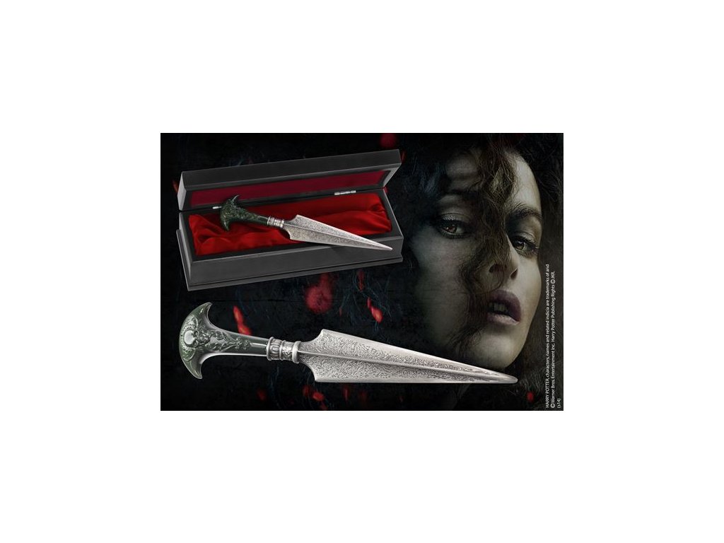 Autentická replika dýky Bellatrix Lestrangeové, největší pobočnicí a obdivovatelkou Lorda Voldemorta. Dýka je vyrobená z litého kovu o délce 19 cm, která je vložena do dekorativní dřevěné krabičky 24 x 5 x 8 cm).