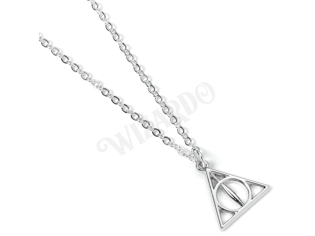 Decentní řetízek se znakem Relikvií smrti. Postříbřený znak o velikosti 15 mm je zavěšen na 40 cm dlouhém řetízku.