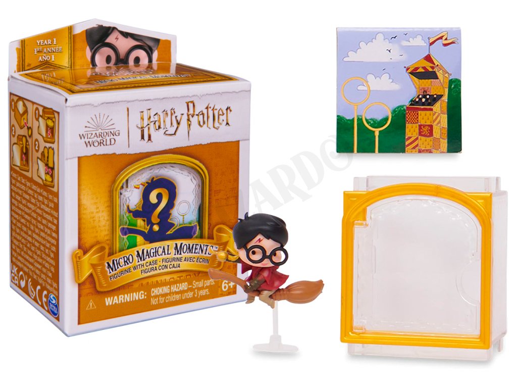 Sbírejte legendární momenty z filmů o Harrym Potterovi s figurkami z edice Micro Magical Moments. Každé jednotlivé balení obsahuje 3,8 cm vysokou figurku s překvapením zobrazující scénu z prvního ročníku filmu Harry Potter Kámen mudrců, průhlednou vitrínu s rámečkem na portrét z Bradavic a stojánek. Rozbalte figurku a objevte, kdo se skrývá uvnitř. Je to Hagrid s narozeninovým dortem, Hermiona, která se učí levitační kouzlo, nebo Harry při svém prvním zápase ve famfrpálu?