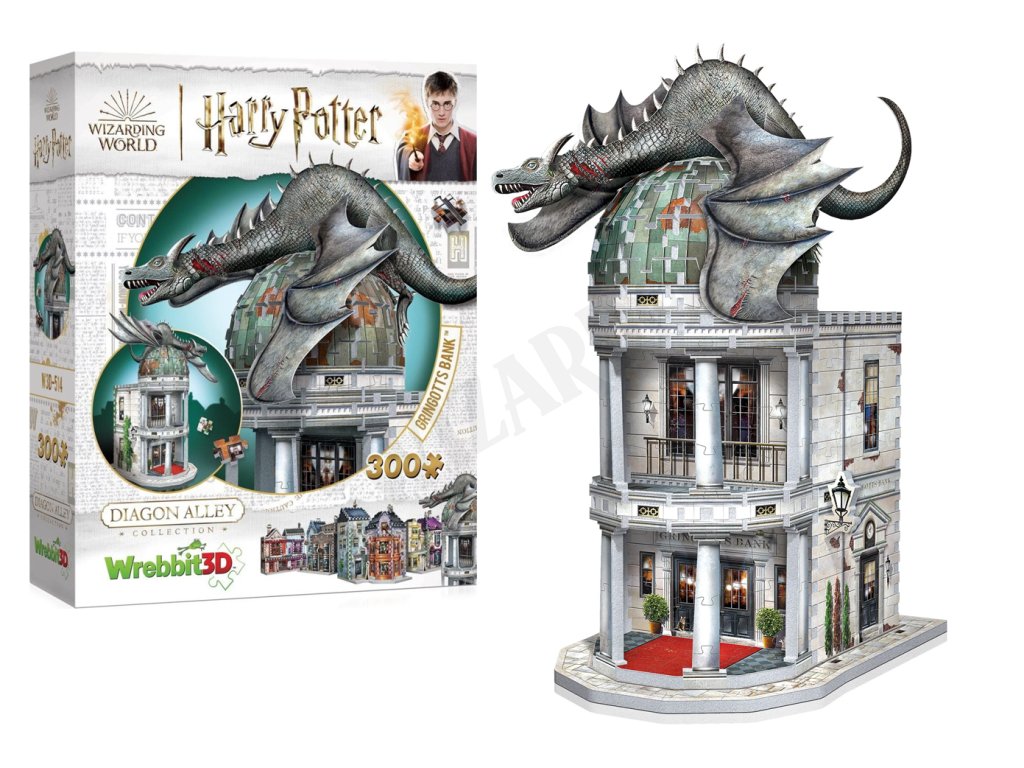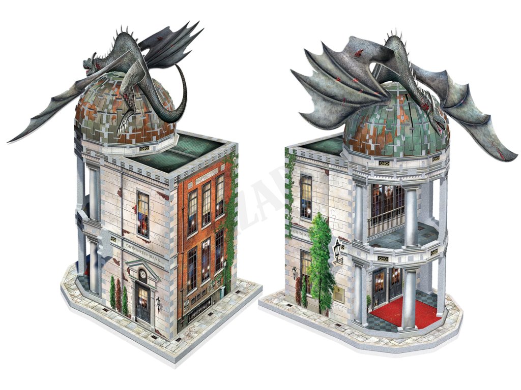 Čarodějná banka Gringottovi, která se tyčí nad Příčnou ulicí, je pevností pro všechno, co chceš mít v kouzelnickém světě v bezpečí. Buďte si jisti: skřítci vaše peníze a cennosti ochrání v trezorech zakořeněných hluboko uvnitř této sněhobílé patrové budovy. Tato 3D skládačka, doplněná řvoucím ukrajinským železnobřichým drakem, je skvělým doplňkem každé sbírky Harryho Pottera a potterovských poliček!