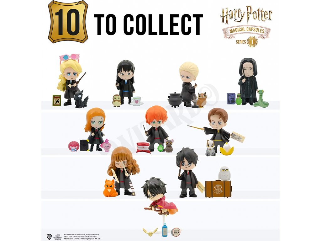 Každá kouzelná kapsle obsahuje 1 z 10 oblíbených postav ze světa J. K. Rowlingové, včetně Harryho, Hermiony, Rona, Cedrica, Draca a Snapea, spolu s hůlkou, fantastickým zvířecím mazlíčkem nebo předmětem a dalšími 3 doplňky. Sbírejte všech 10 postav ze světa Harryho Pottera!