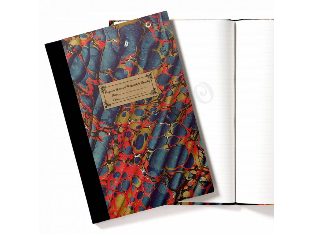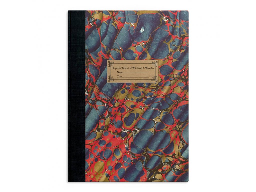 Replika sešitu z filmů Harry Potter s pevnou vazbou, potištěným hřbetem a 128 linkovanými stranami.