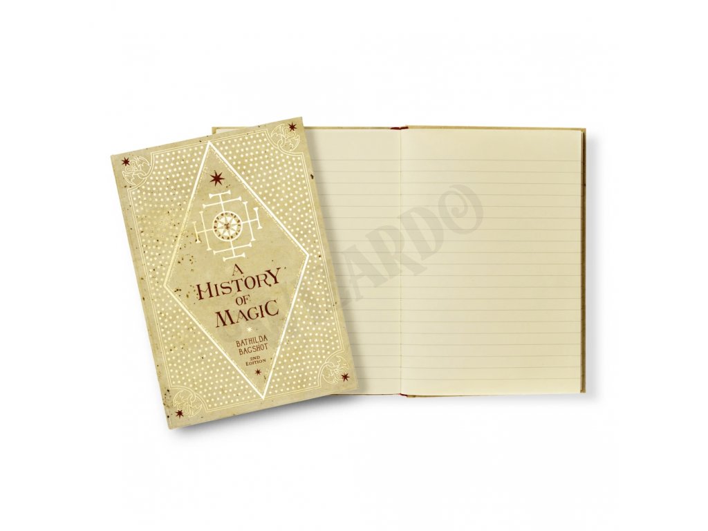 Zápisník v podobě filmové repliky učebnice Historie čár a kouzel, kterou jste mohli vidět ve filmech o Harrym Potterovi. Zápisník je linkovaný o rozměrech 17,7 x 12,7 cm.